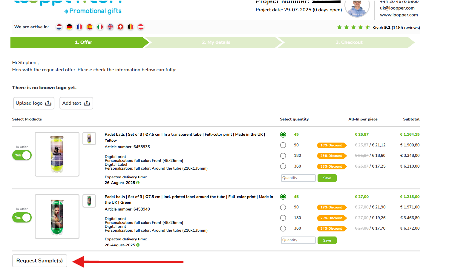 Ordering a sample has never been easier! You can now request a sample directly from your online offer page. If you don't have a quote yet, simply request one through our online shop. We will then send you a quote. You'll then have the option to request a sample.
